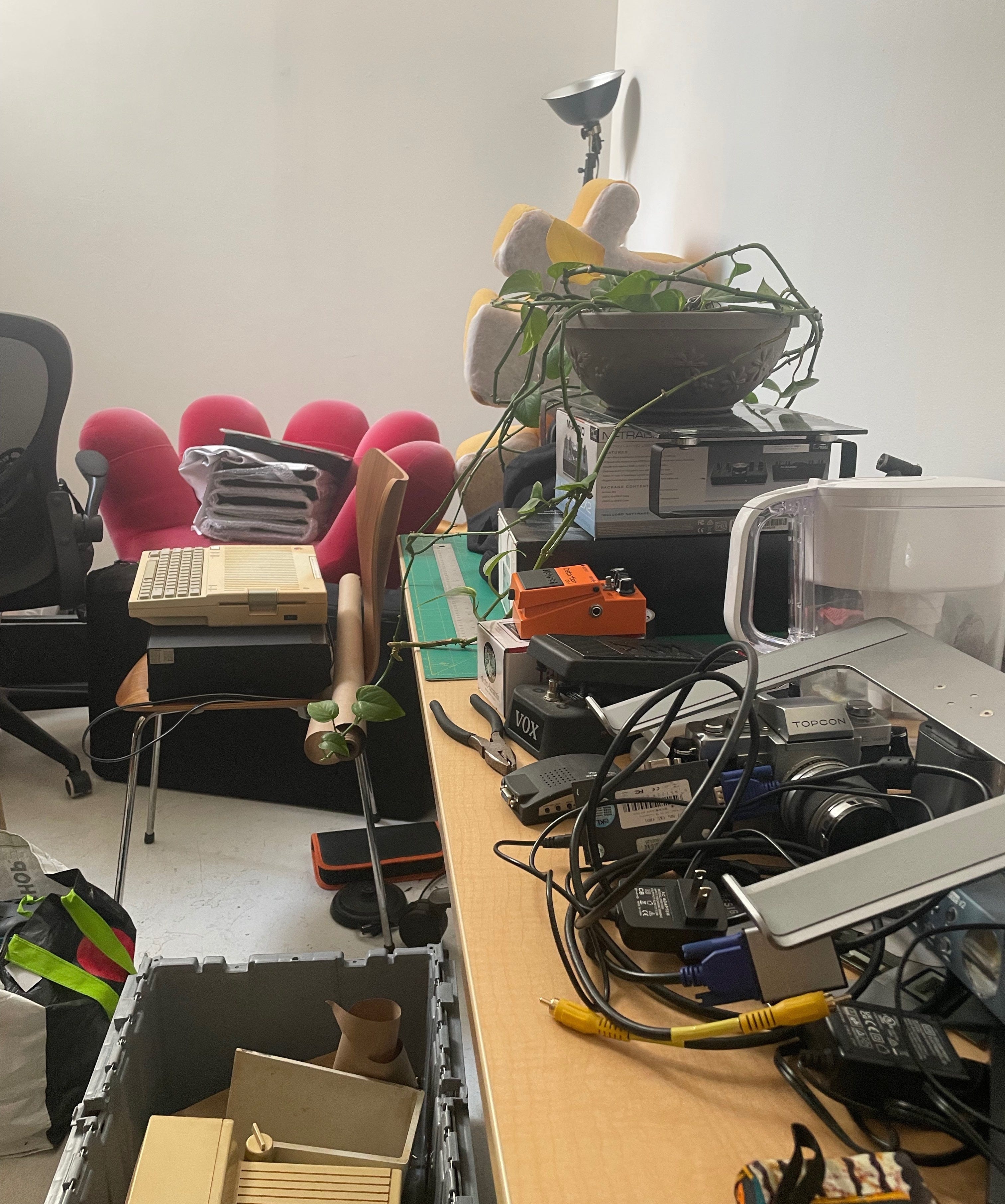 Day two of moving massive quantities of analog equipment to the new studio in LIC. Once again, Scott was labeling boxes, wrapping monitors, hauling trash out of the old studio; I was sitting in his desk chair, offering to help half-heartedly but mostly ripping through Eligible.